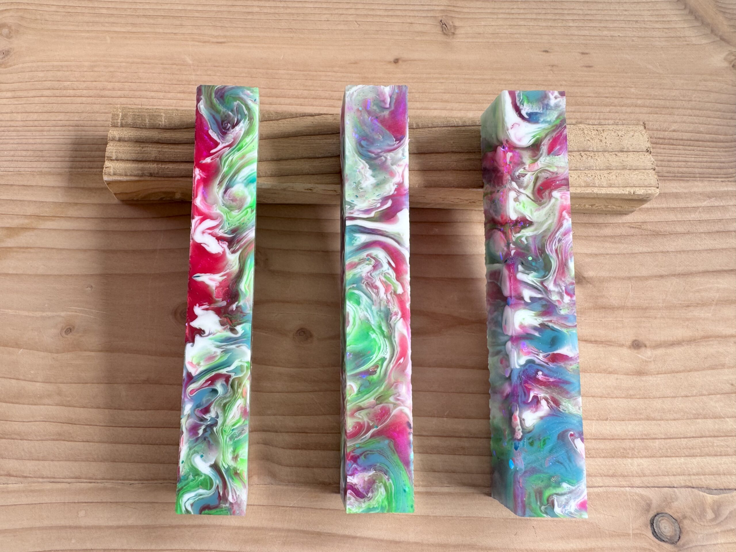 Le stylo présenté est un exemple de ce que peut donner le carrelet. Chaque carrelet d'une même coulée est différent, il en est de même pour l'épaisseur du stylo, tourné à la main, sur une forme identique, l'épaisseur peut varier, ce qui rend tous les stylos uniques.