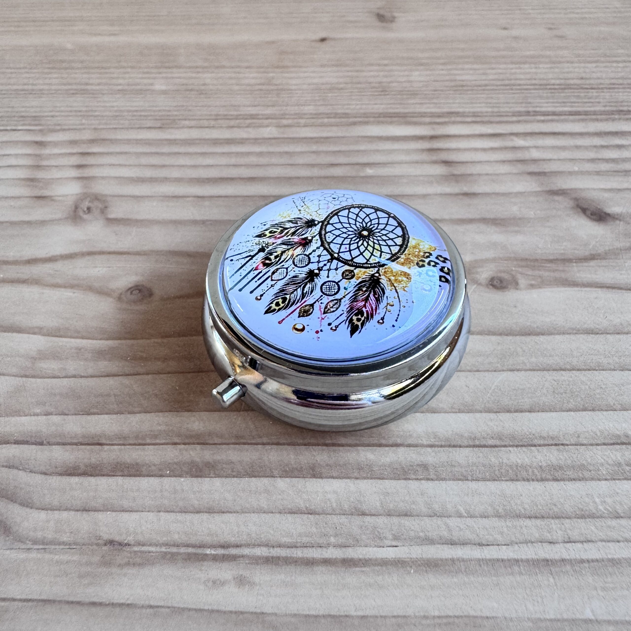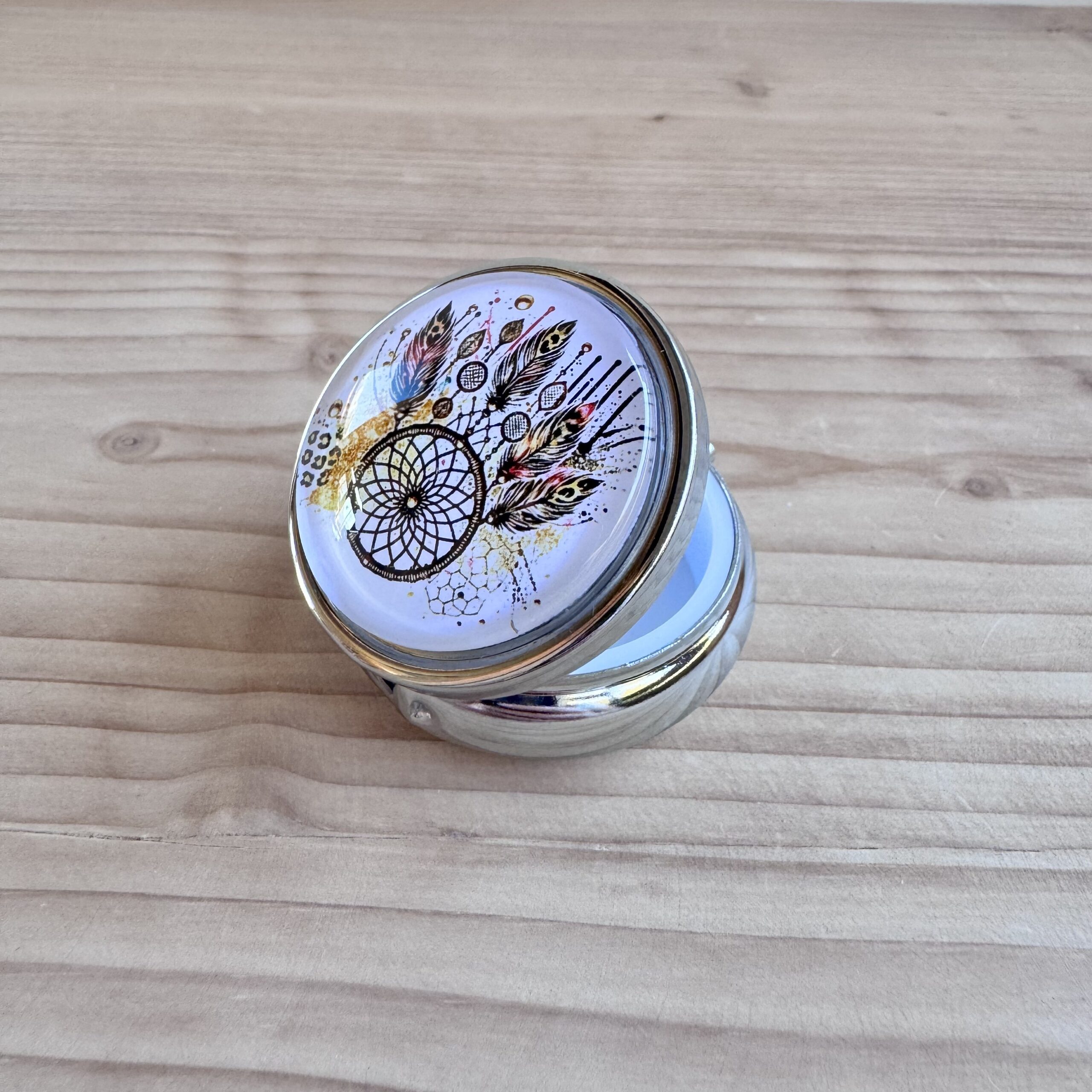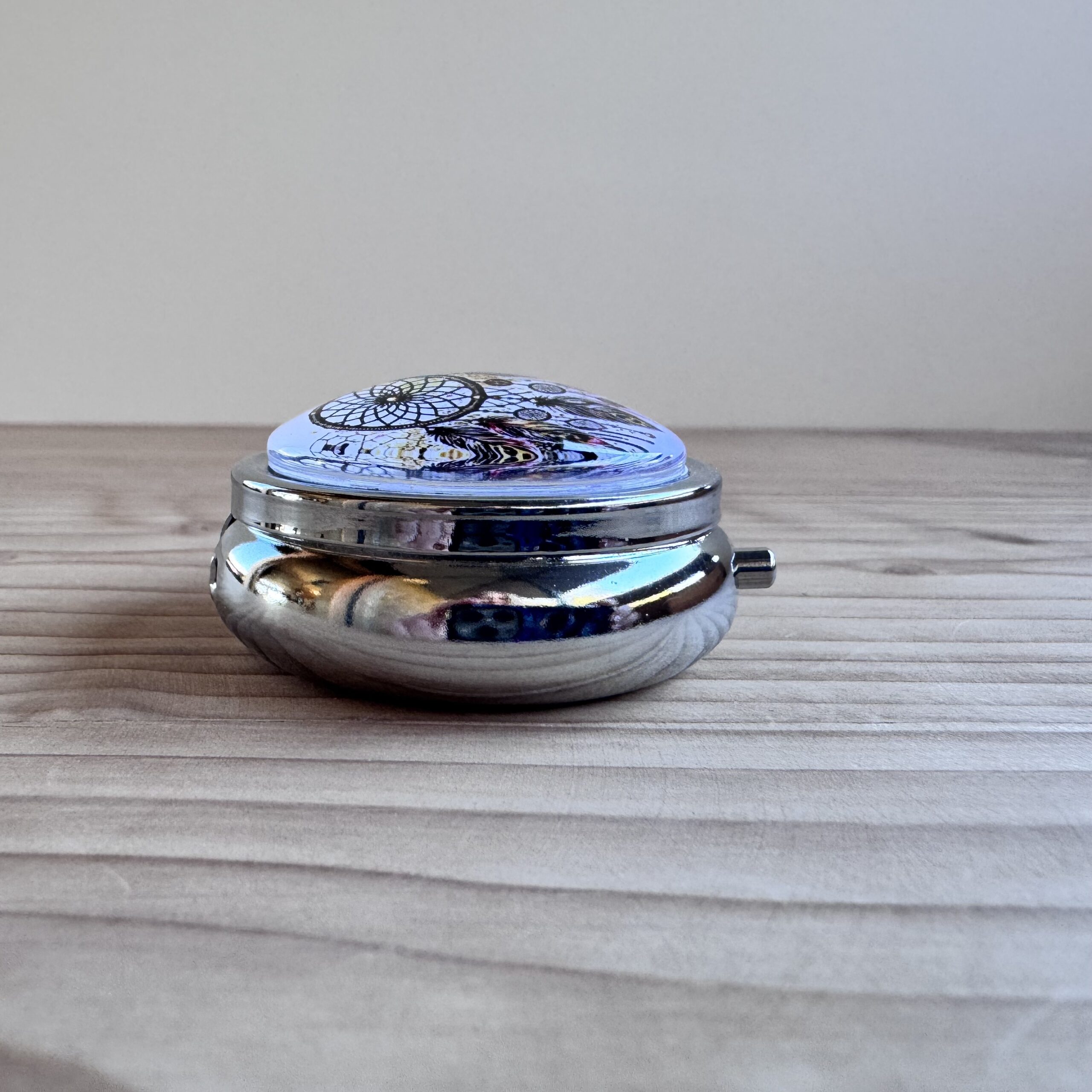 Boite en métal rehaussée d'une capsule en verre, idéale pour vos déchets ou pour conserver votre putty.