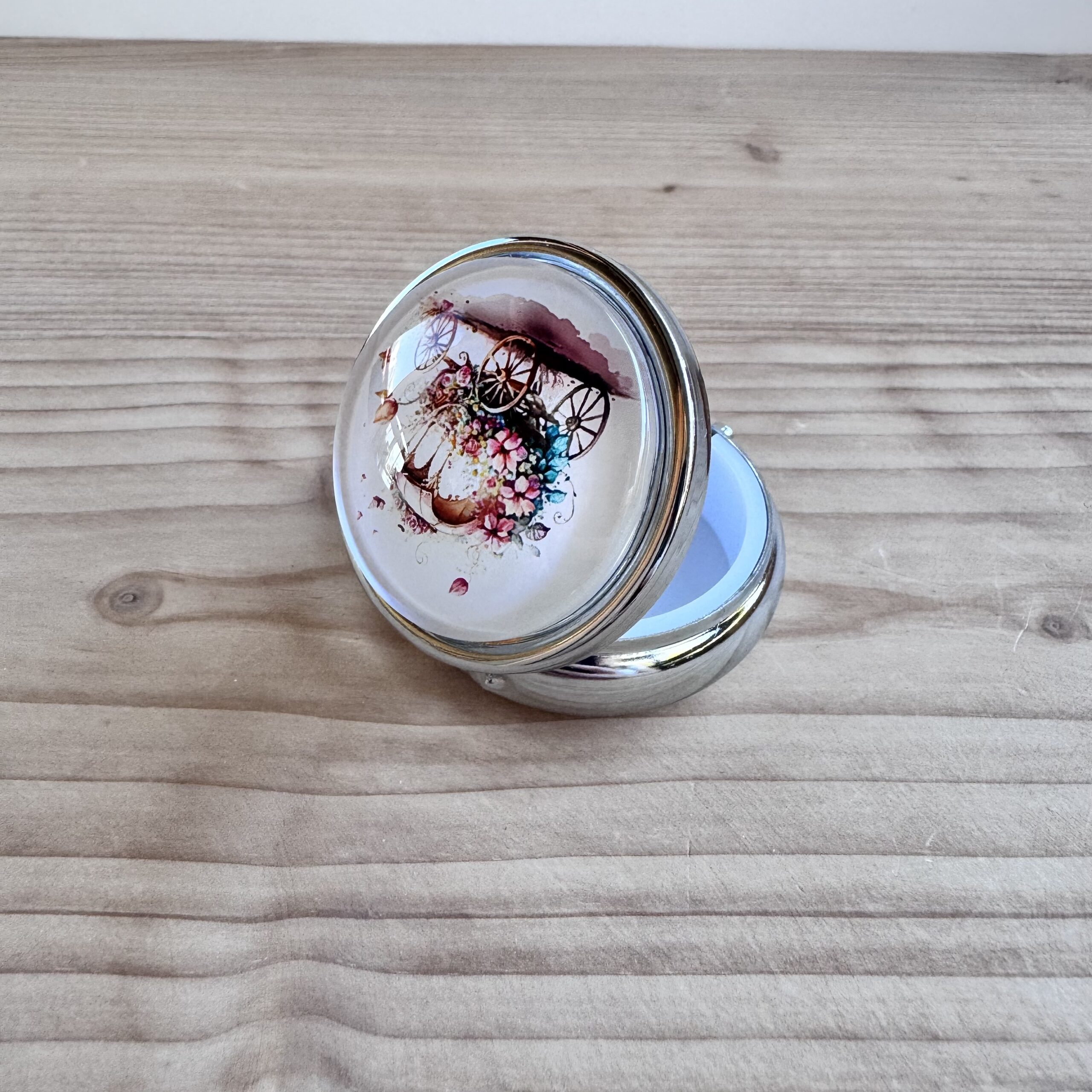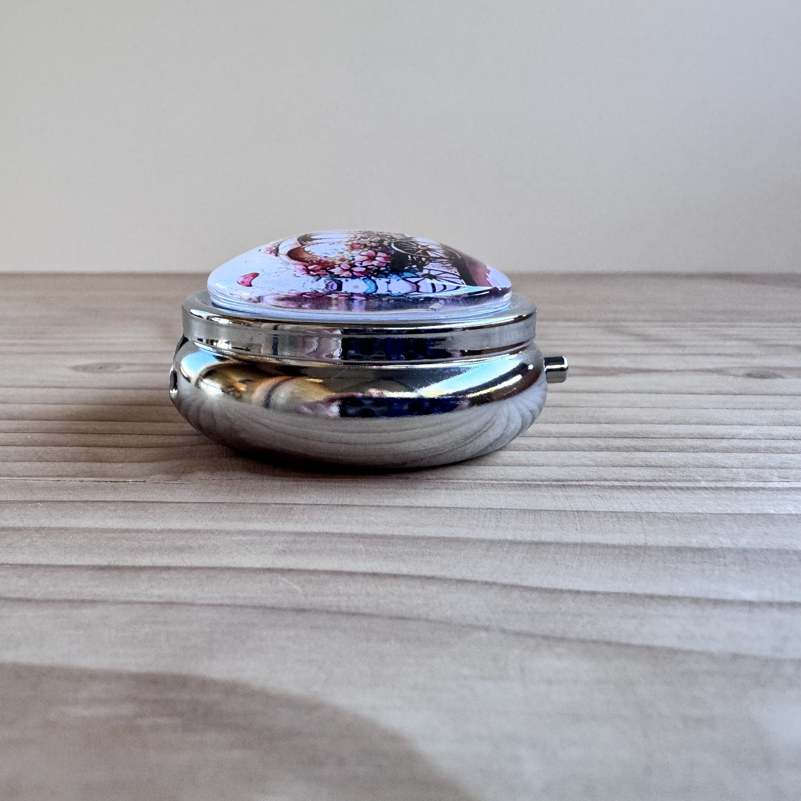 Boite en métal rehaussée d'une capsule en verre, idéale pour vos déchets ou pour conserver votre putty.