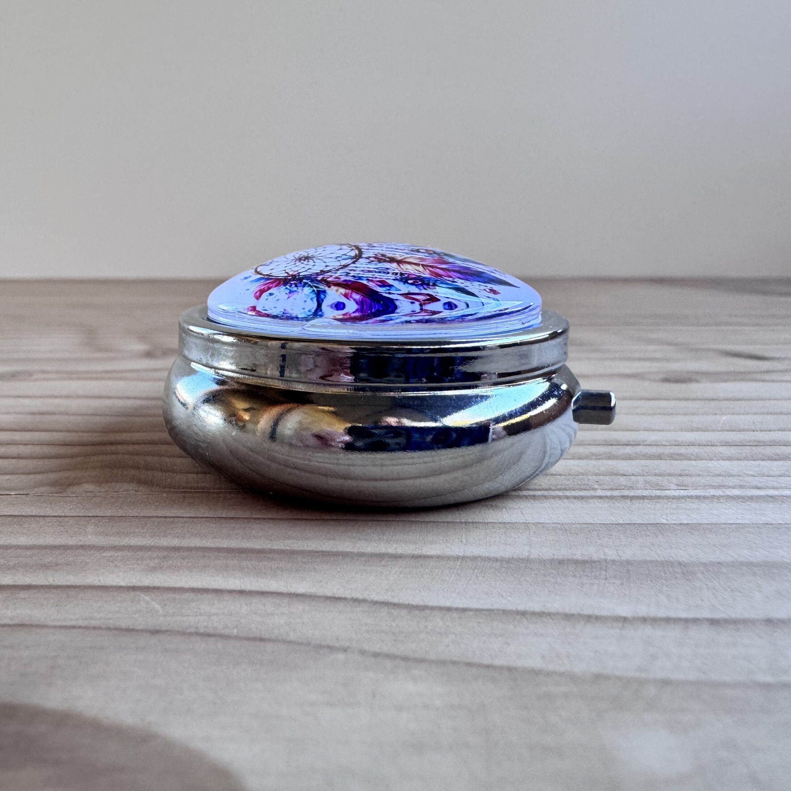 Boite en métal rehaussée d'une capsule en verre, idéale pour vos déchets ou pour conserver votre putty.