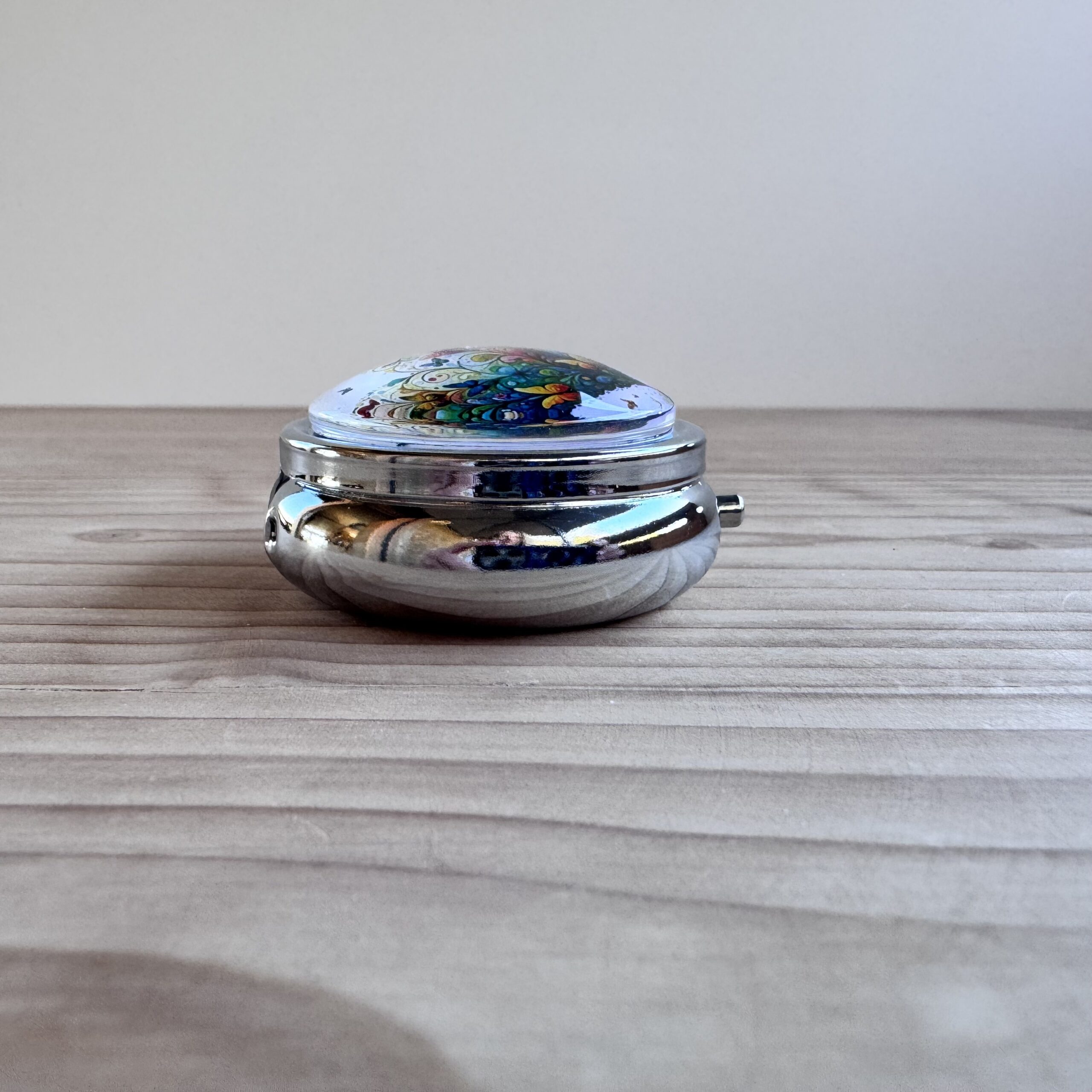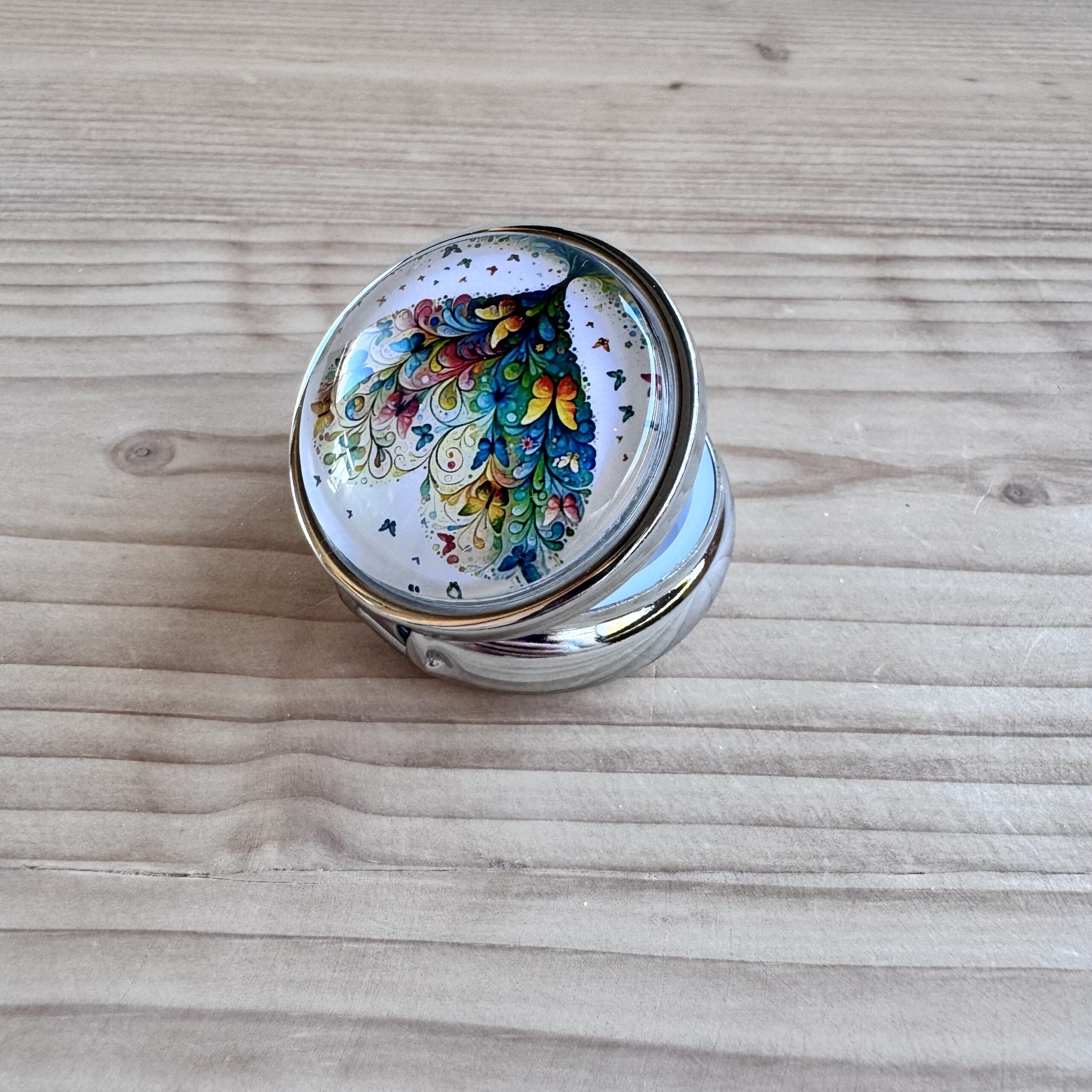 Boite en métal rehaussée d'une capsule en verre, idéale pour vos déchets ou pour conserver votre putty.
