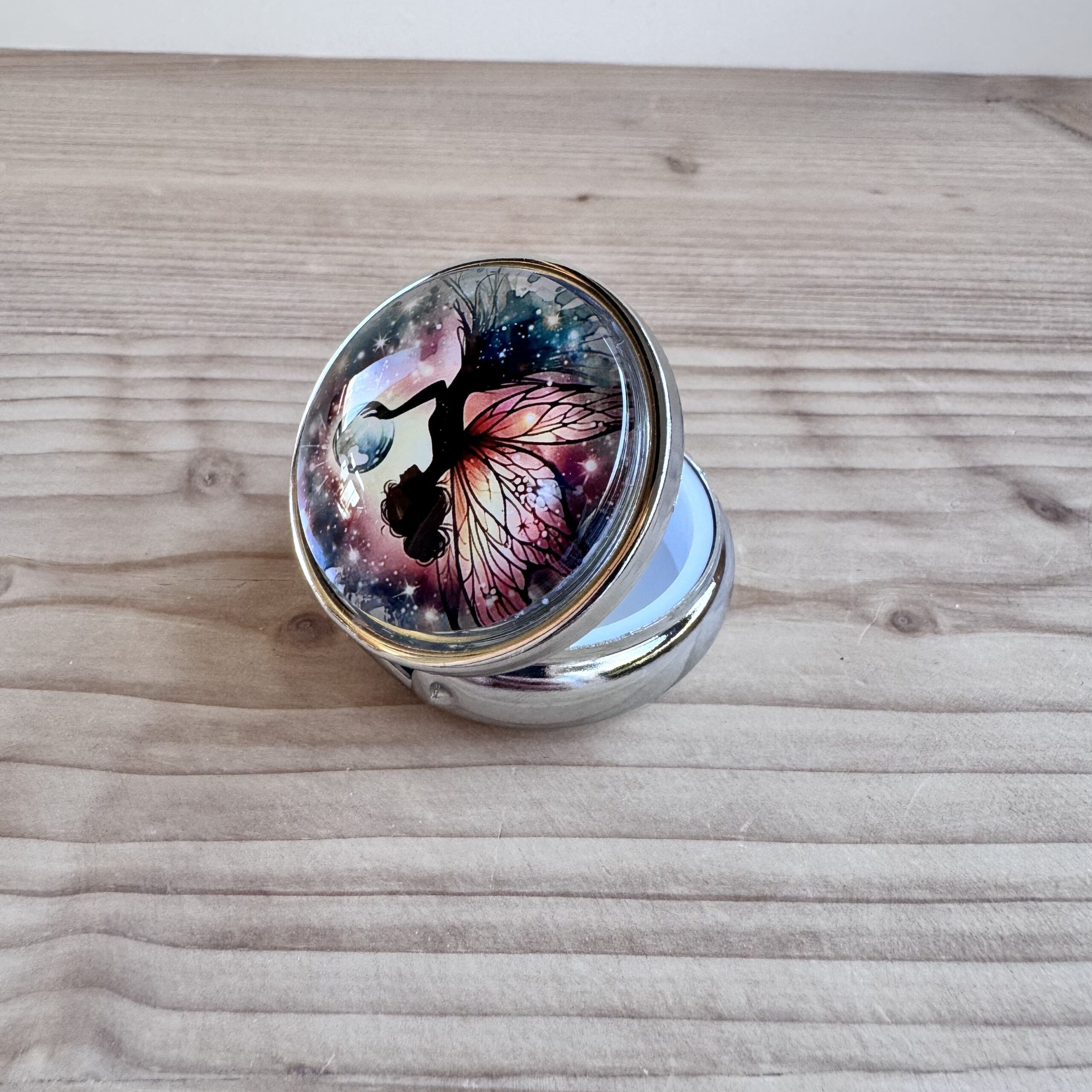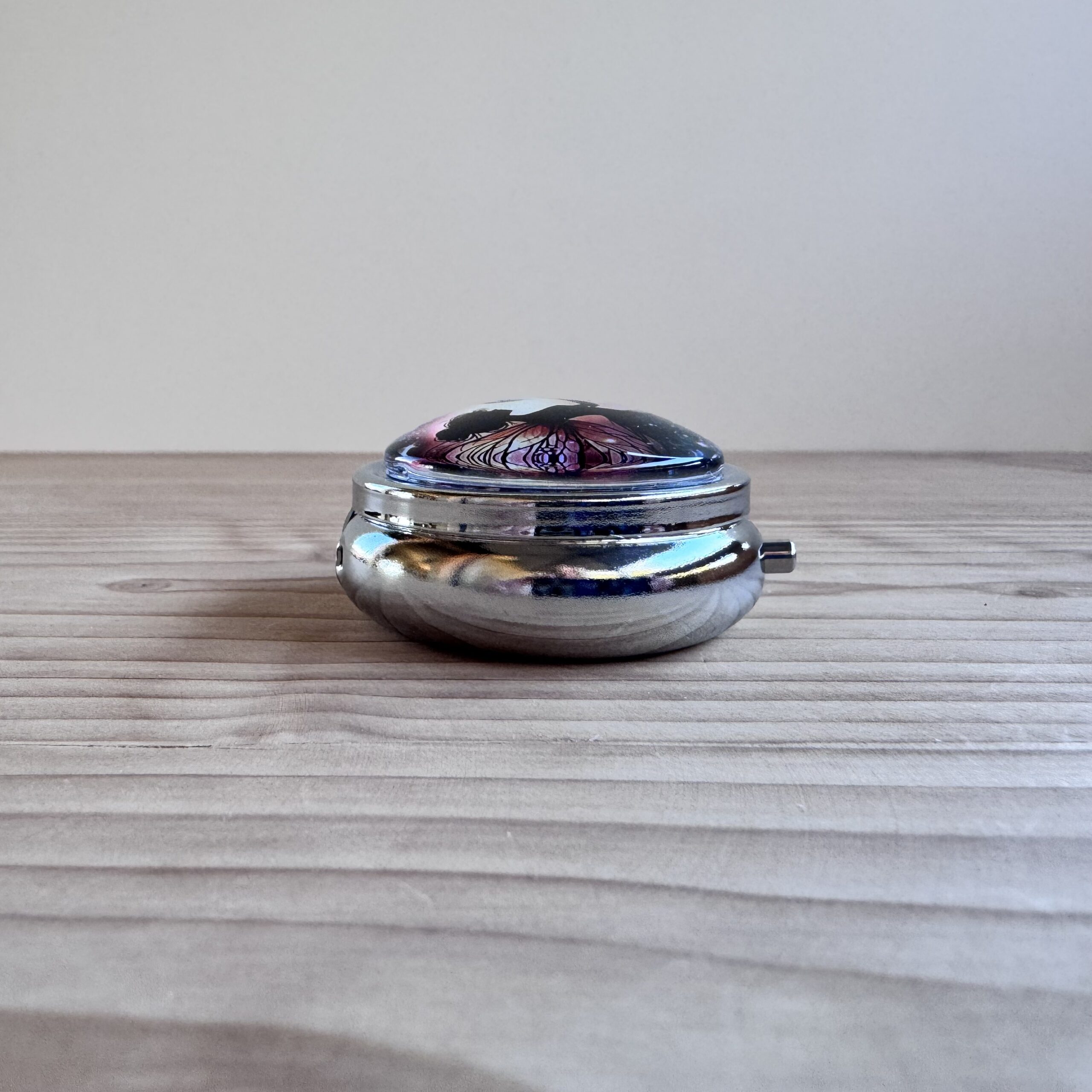 Boite en métal rehaussée d'une capsule en verre, idéale pour vos déchets ou pour conserver votre putty.