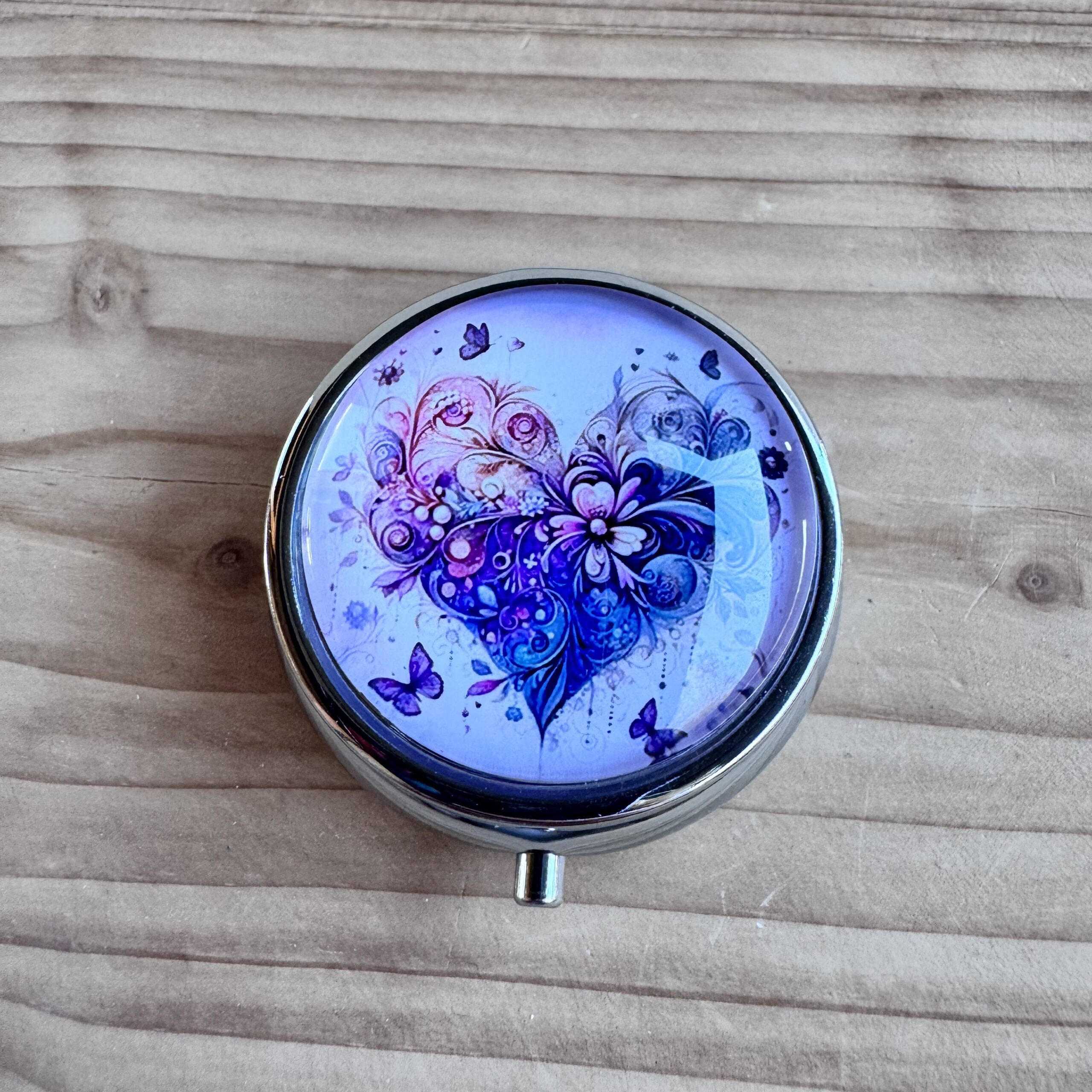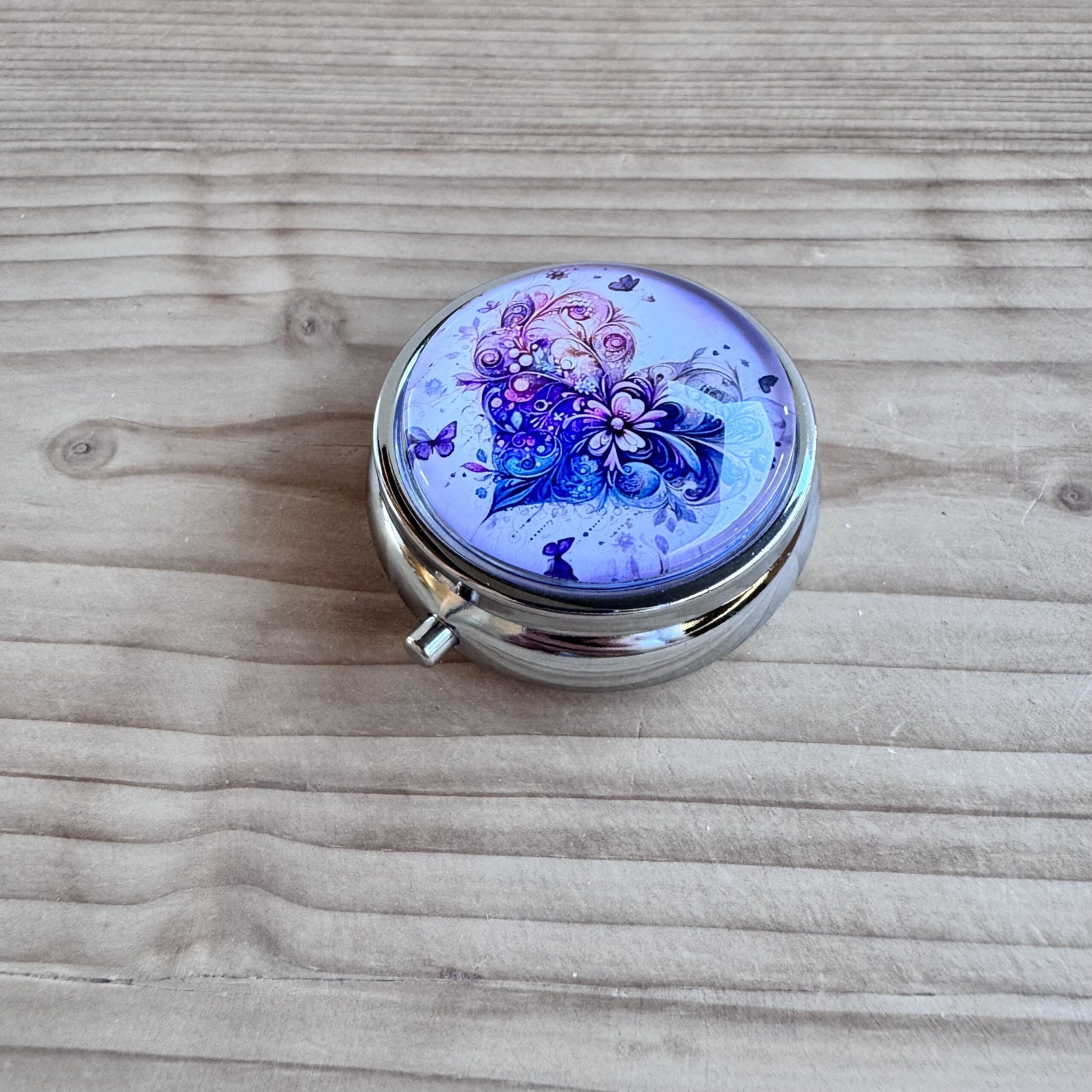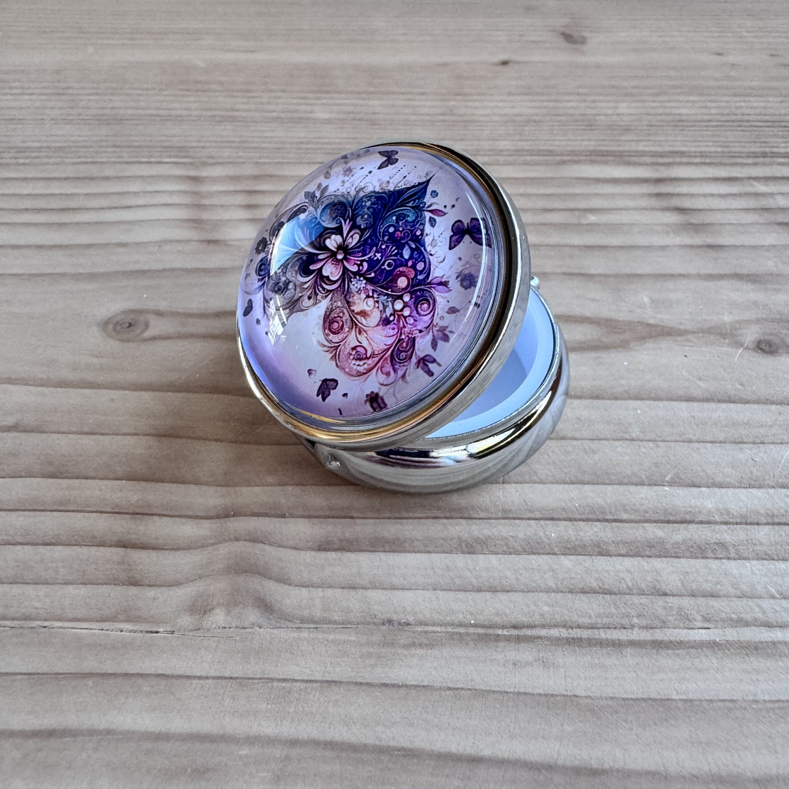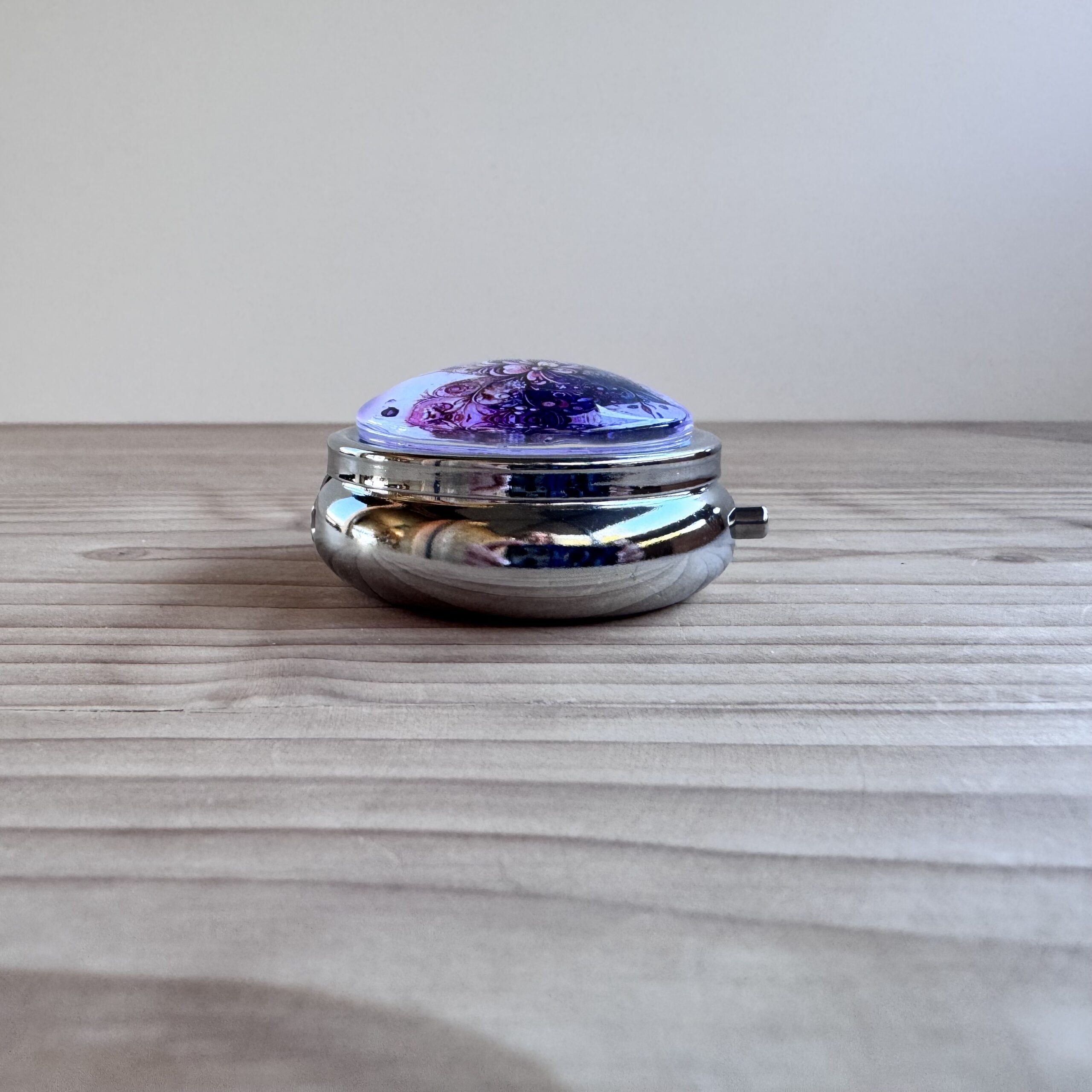 Boite en métal rehaussée d'une capsule en verre, idéale pour vos déchets ou pour conserver votre putty.