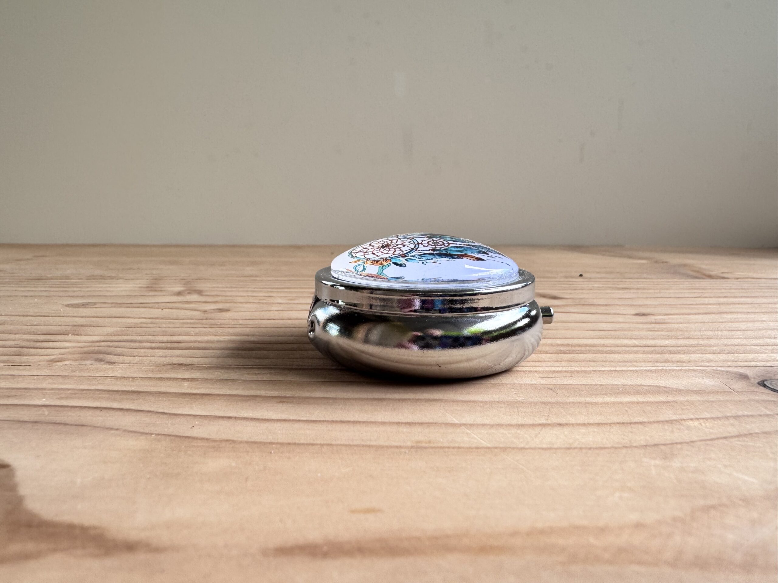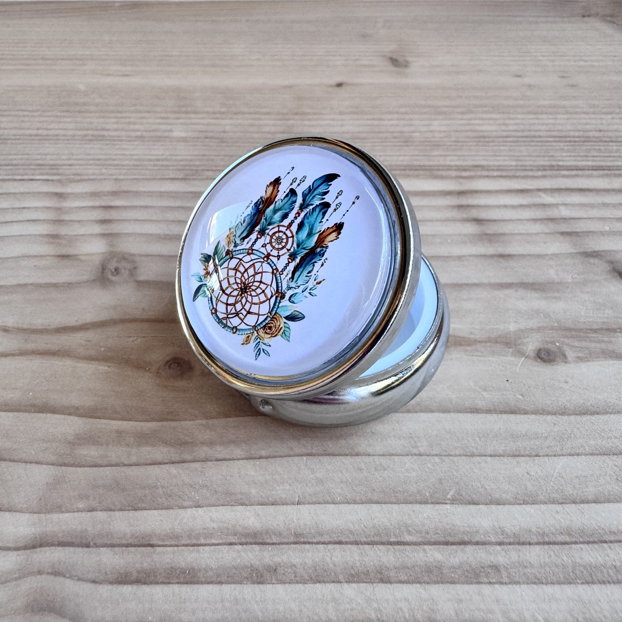 Boite en métal rehaussée d'une capsule en verre, idéale pour vos déchets ou pour conserver votre putty.
