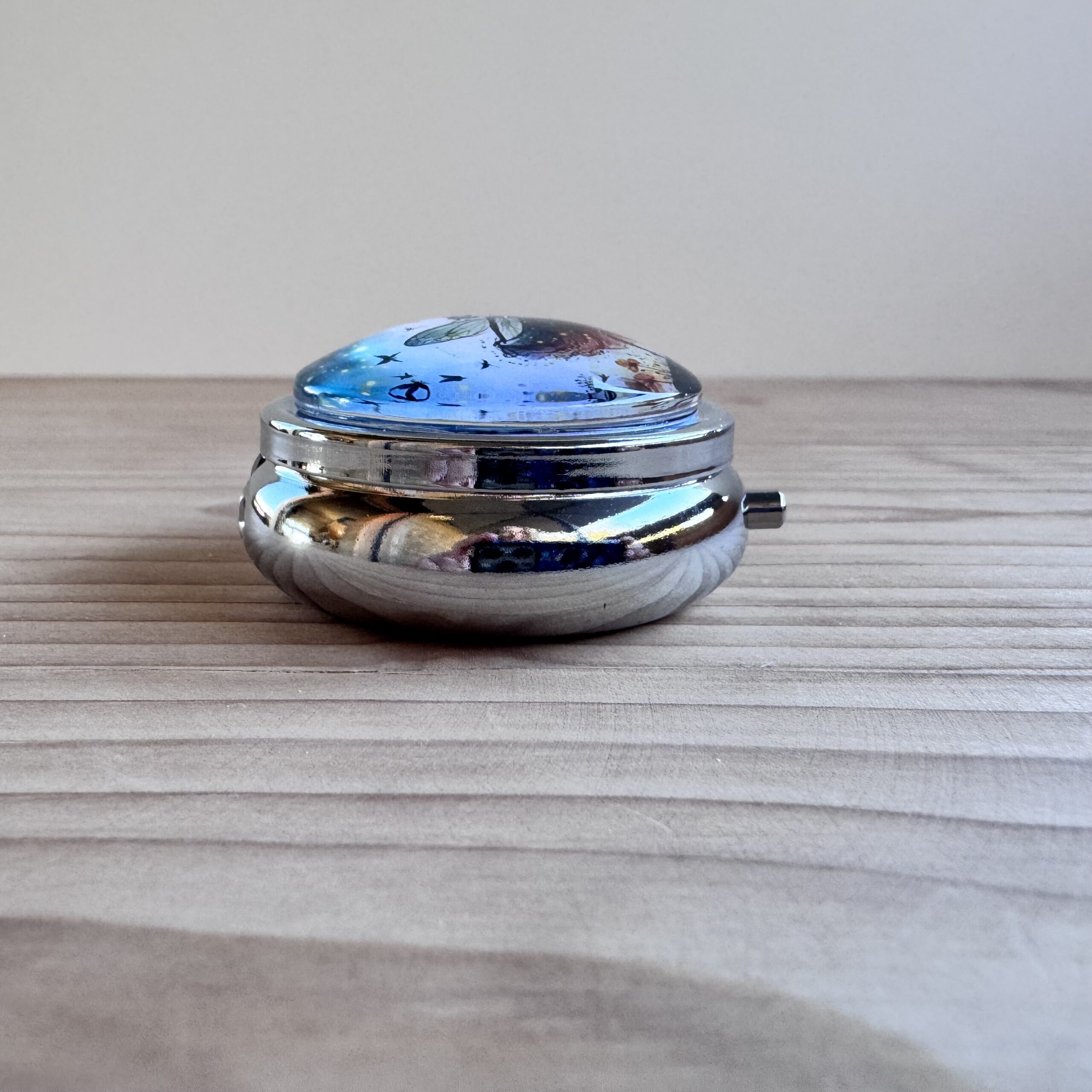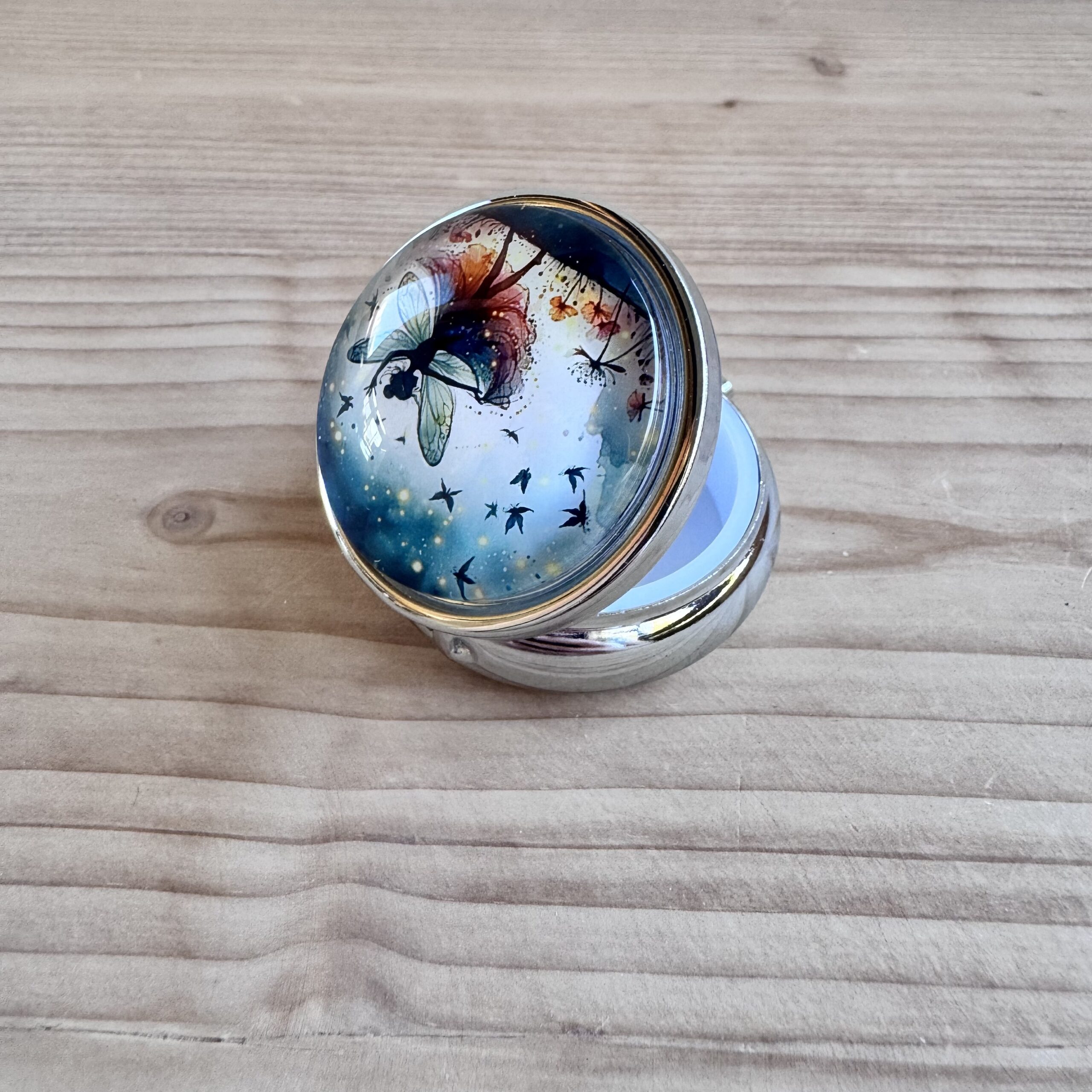 Boite en métal rehaussée d'une capsule en verre, idéale pour vos déchets ou pour conserver votre putty.