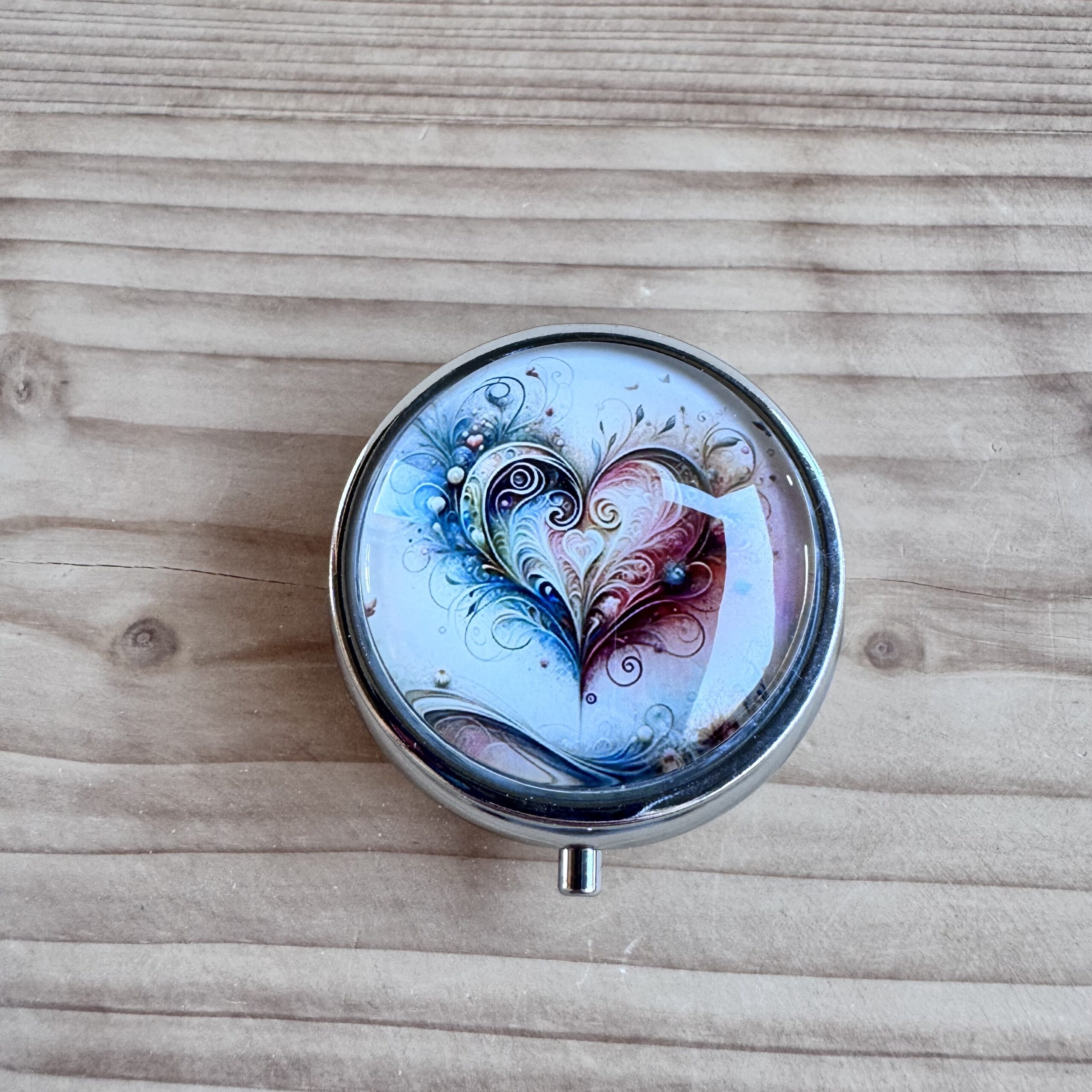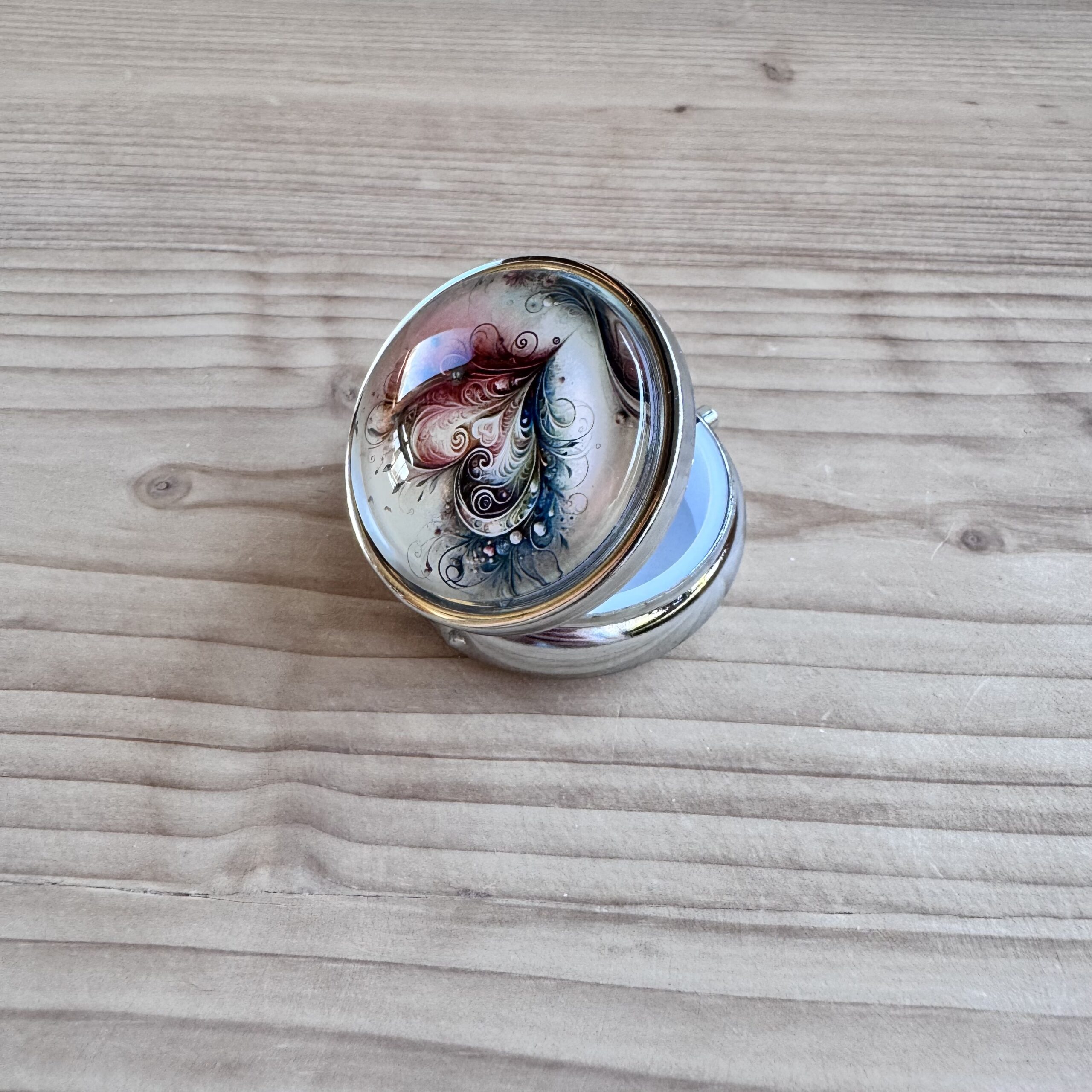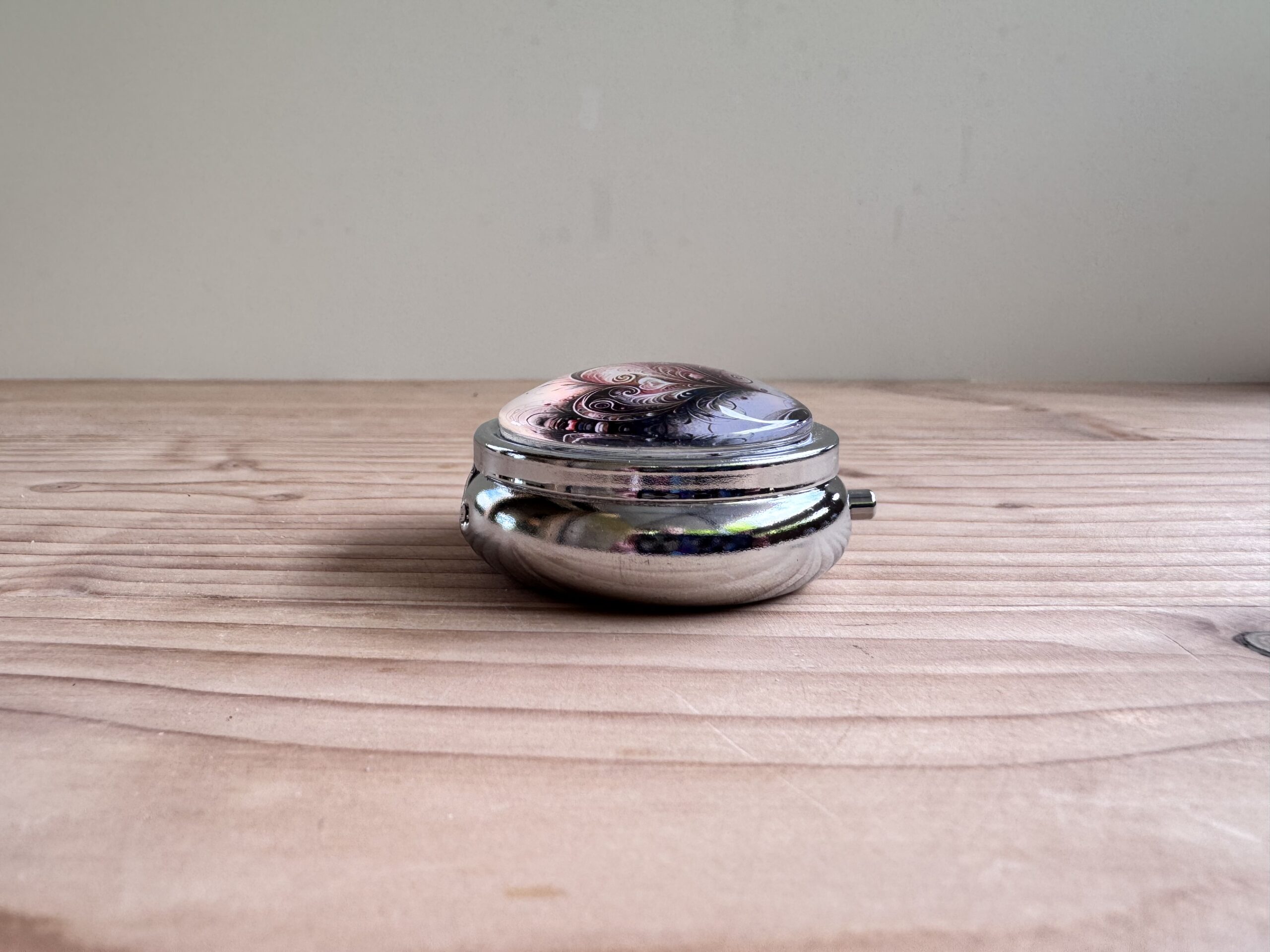 Boite en métal rehaussée d'une capsule en verre, idéale pour vos déchets ou pour conserver votre putty.